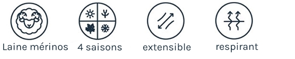 Grâce à la structure de leur peau et à la richesse de leur toison, les moutons mérinos produisent jusqu'à cinq kilos de laine par an. Après sélection et lavage, la laine mérinos de haute qualité est dix fois plus fine que la laine traditionnelle, d'une douceur exceptionnelle et ne gratte pas. Les fibres sont peignées, filées et transformées en vêtements respirants, thermorégulateurs et antibactériens. La laine mérinos conserve sa fraîcheur avec un minimum d'aération et offre un confort optimal en toute saison.