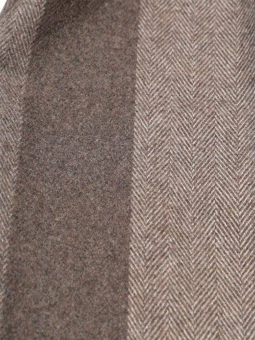 Deze zachte heren sjaal van Suitable heeft een tijdloze kleur en is door zijn lengte op vele manieren te dragen. De sjaal heeft een gestreept dessin met herringbone structuur en franjes op de uiteindes. Completeer je herfst- of winterlook met deze combinatie van warmte, comfort en stijl.
